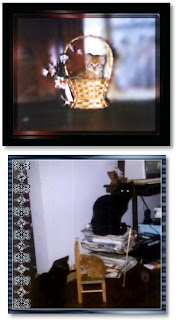 Blacky.. yeah.. he was a cat. Black cat, of course. yep... Spot? yeah... well... I named him Spot because he had one white spot on the very tip of his tail. Punkin... yep... he was orange. He was just a tiny little thing. We had him for awhile and he got older and just didn't grow very fast at all... but he was soooooo cute. That basket he is in is NOT a very large basket. Check out the chair! When we moved from our home to DeKalb, we had to give the kitties away and Punkin did grow! He grew into a good sized, king of the hill tom cat. :)
